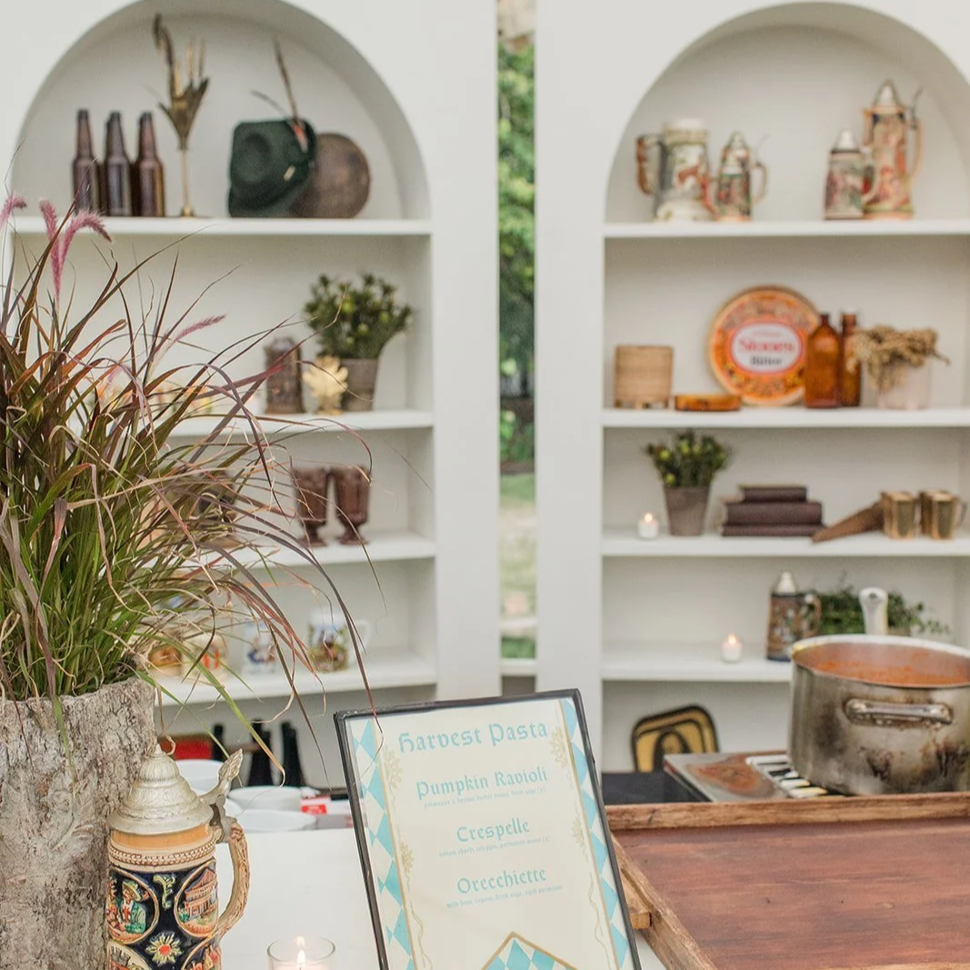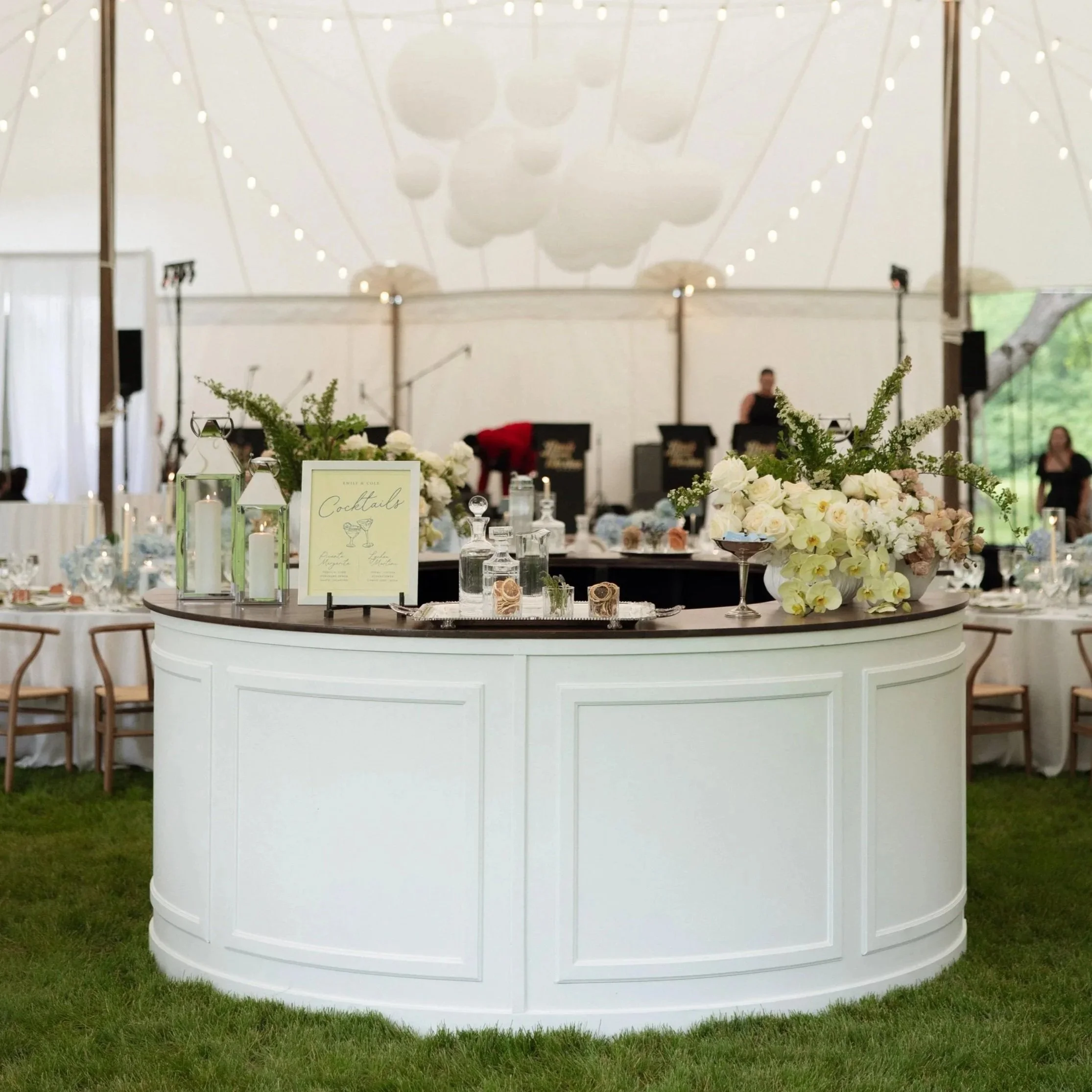 bars carts dinnerware backdrops glassware shelves lounge lighting cake stands vases signage chargers props pillows flatware